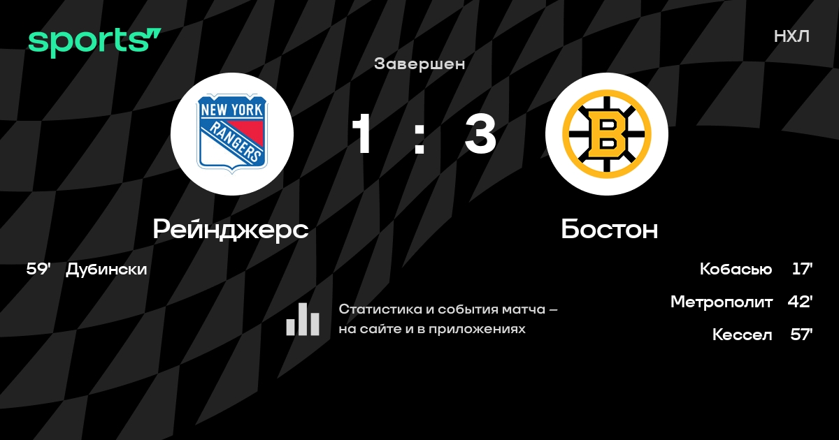 Как прошел матч, смотрите в текстовой трансляции Рейнджерс - Бостон на Sports.ru