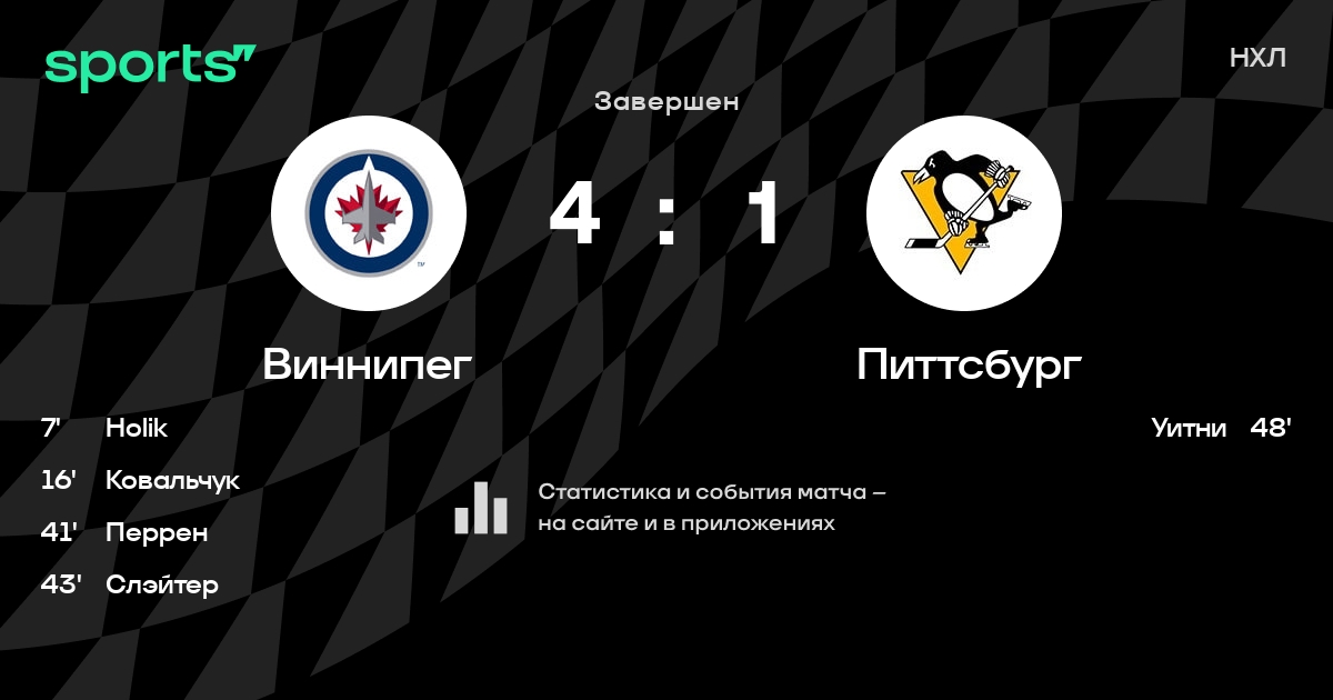 Как прошел матч, смотрите в текстовой трансляции Виннипег - Питтсбург на Sports.ru