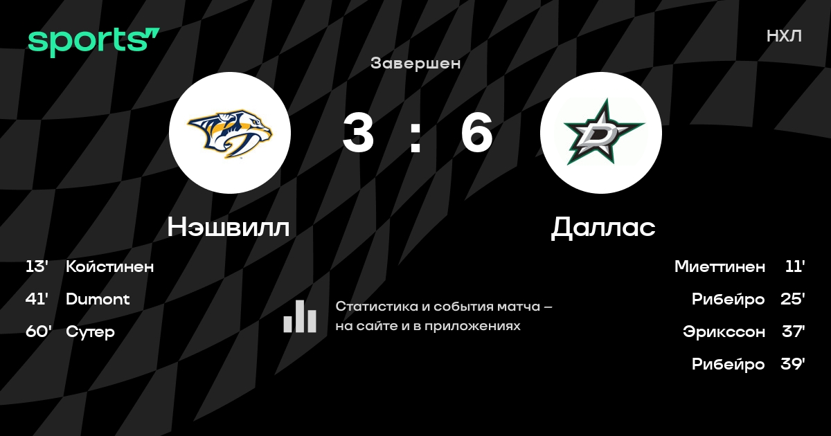 Как прошел матч, смотрите в текстовой трансляции Нэшвилл - Даллас на Sports.ru
