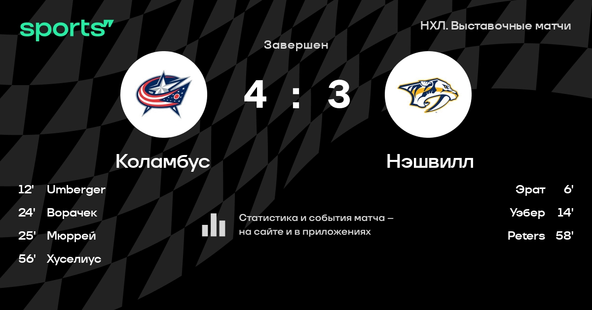 В прошедшем матче в рамках турнира НХЛ. Выставочные матчи состоялась встреча команд Коламбус - Нэшвилл в городе Коламбус (США) на стадионе Nationwide Arena (вместимость - 18136)