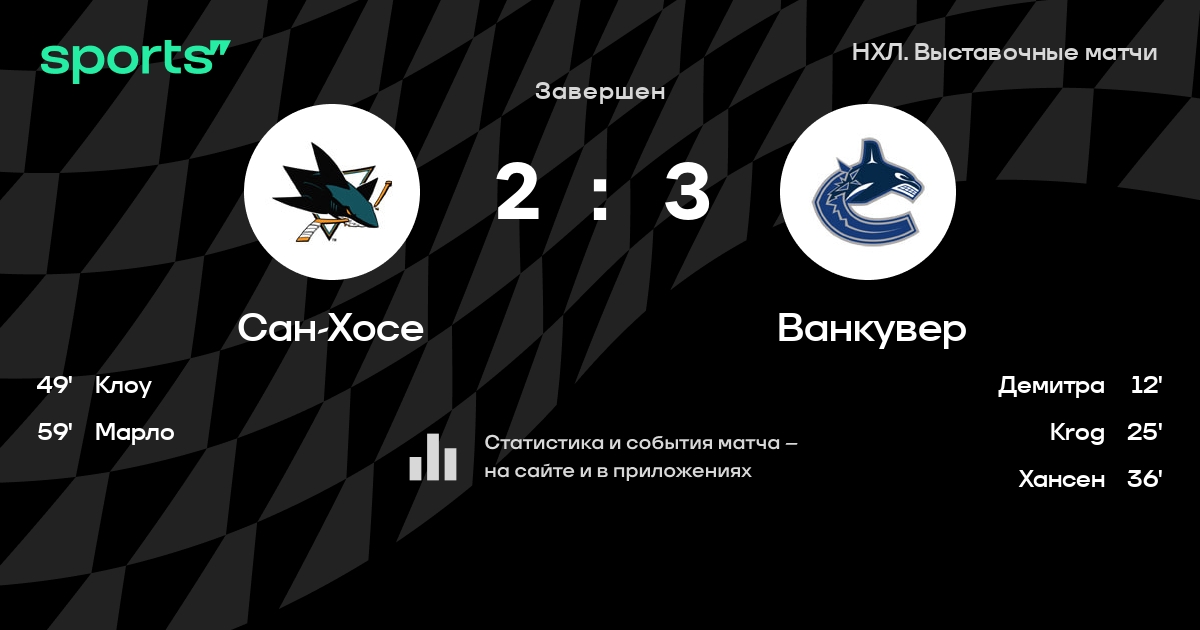 В прошедшем матче в рамках турнира НХЛ. Выставочные матчи состоялась встреча команд Сан-Хосе - Ванкувер в городе Сан-Хосе (США) на стадионе SAP Center at San Jose (вместимость - 17496)