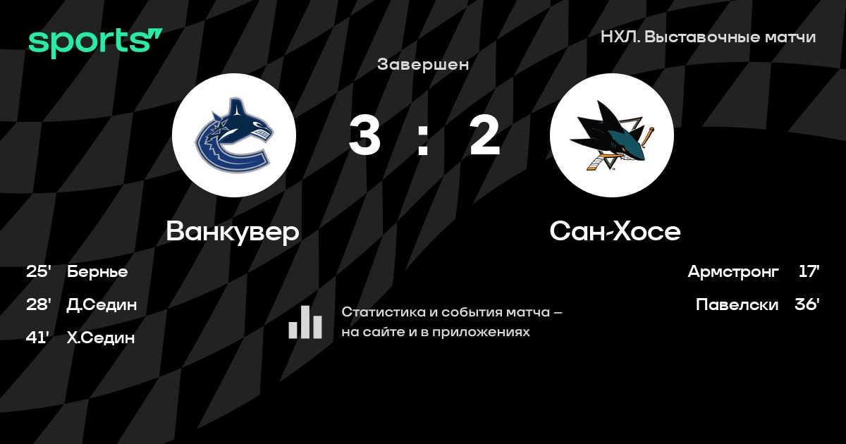 В прошедшем матче в рамках турнира НХЛ. Выставочные матчи состоялась встреча команд Ванкувер - Сан-Хосе в городе Ванкувер (Канада) на стадионе Rogers Arena (вместимость - 18860)