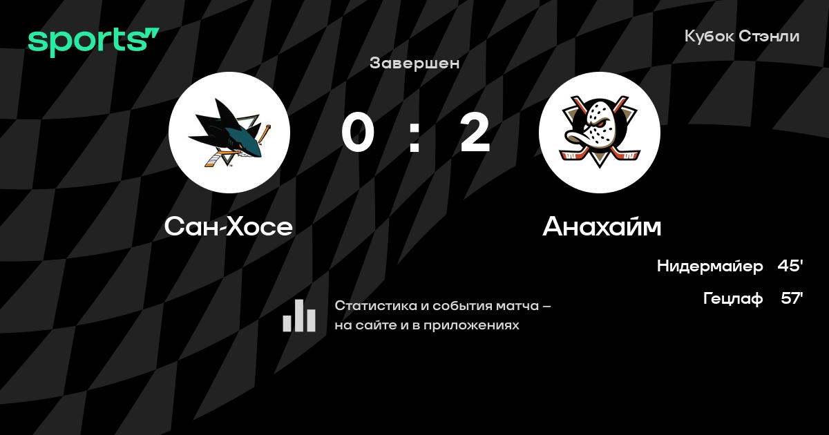 В прошедшем матче в рамках турнира Кубок Стэнли состоялась встреча команд Сан-Хосе - Анахайм в городе Сан-Хосе (США) на стадионе SAP Center at San Jose (вместимость - 17496)