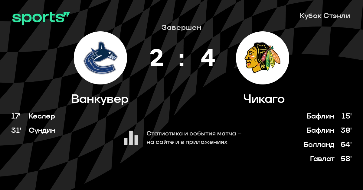 В прошедшем матче в рамках турнира Кубок Стэнли состоялась встреча команд Ванкувер - Чикаго в городе Ванкувер (Канада) на стадионе Rogers Arena (вместимость - 18860)