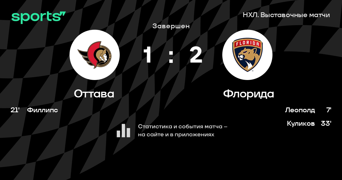 В прошедшем матче в рамках турнира НХЛ. Выставочные матчи состоялась встреча команд Оттава - Флорида в городе Оттава (Канада) на стадионе Canadian Tire Centre (вместимость - 19153)