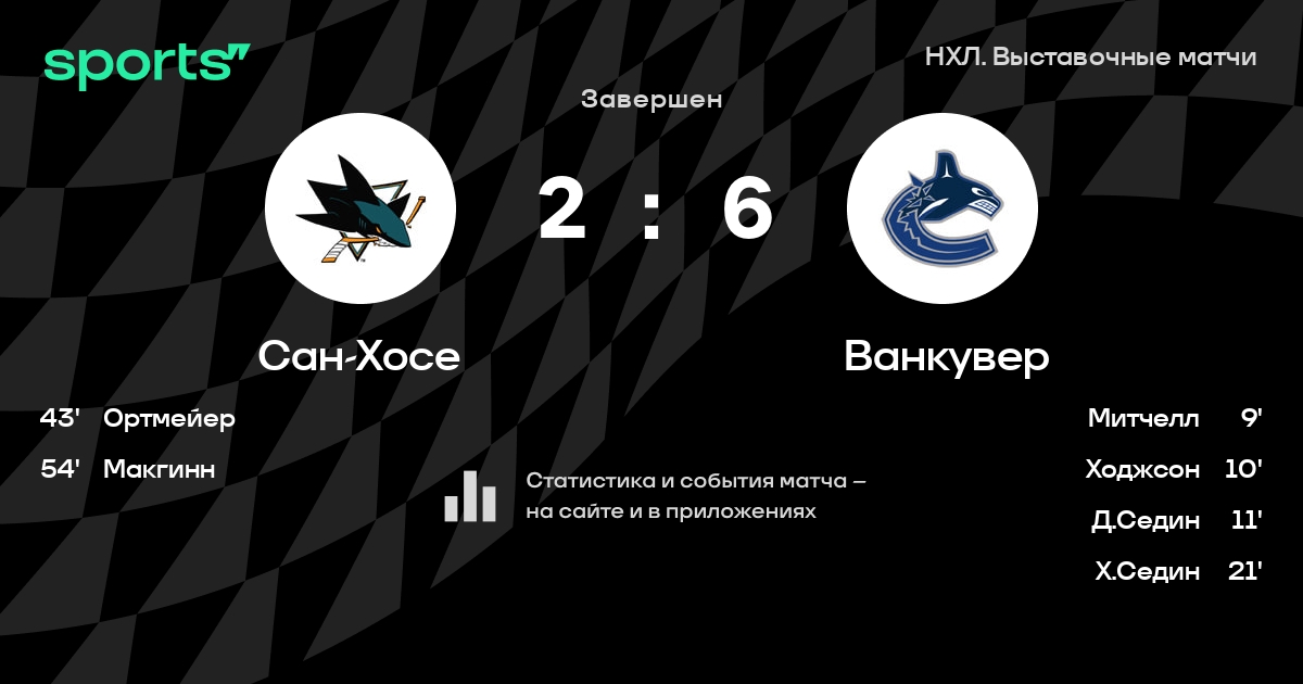 В прошедшем матче в рамках турнира НХЛ. Выставочные матчи состоялась встреча команд Сан-Хосе - Ванкувер в городе Сан-Хосе (США) на стадионе SAP Center at San Jose (вместимость - 17496)
