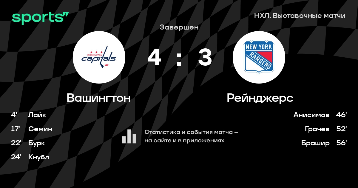 В прошедшем матче в рамках турнира НХЛ. Выставочные матчи состоялась встреча команд Вашингтон - Рейнджерс в городе Вашингтон (США) на стадионе Capital One Arena (вместимость - 20173)