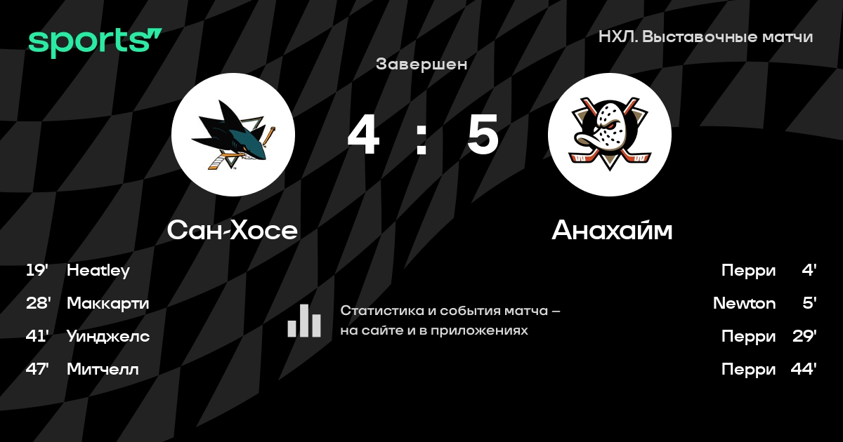 В прошедшем матче в рамках турнира НХЛ. Выставочные матчи состоялась встреча команд Сан-Хосе - Анахайм в городе Сан-Хосе (США) на стадионе SAP Center at San Jose (вместимость - 17496)