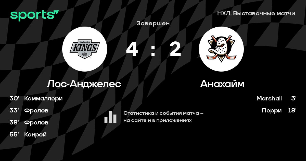 В прошедшем матче в рамках турнира НХЛ. Выставочные матчи состоялась встреча команд Лос-Анджелес - Анахайм в городе Лос-Анджелес (США) на стадионе Crypto.com Arena (вместимость - 18118)