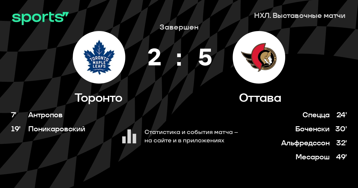 В прошедшем матче в рамках турнира НХЛ. Выставочные матчи состоялась встреча команд Торонто - Оттава в городе Торонто (Канада) на стадионе Scotiabank Arena (вместимость - 18819)