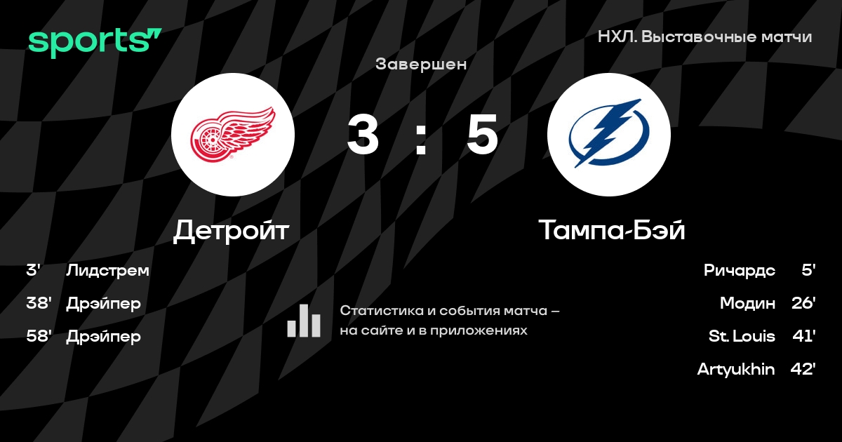 В прошедшем матче в рамках турнира НХЛ. Выставочные матчи состоялась встреча команд Детройт - Тампа-Бэй в городе Детройт на стадионе Joe Louis Arena