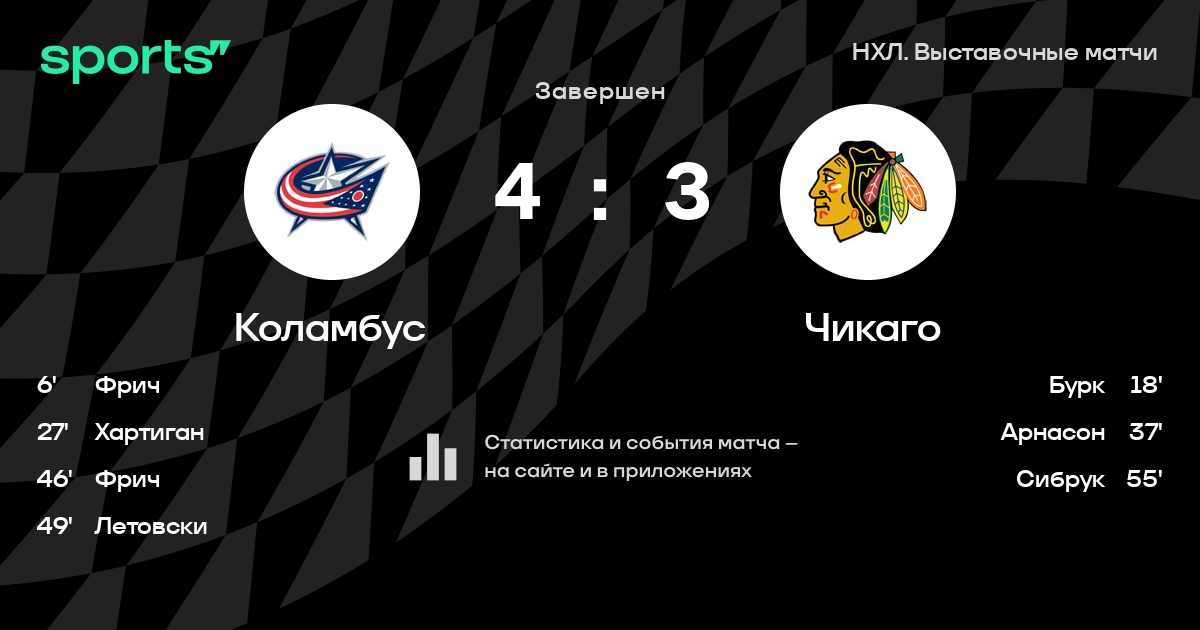 В прошедшем матче в рамках турнира НХЛ. Выставочные матчи состоялась встреча команд Коламбус - Чикаго в городе Коламбус (США) на стадионе Nationwide Arena (вместимость - 18136)
