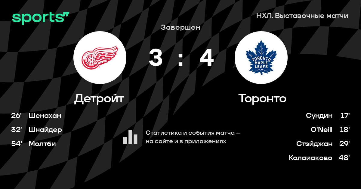 В прошедшем матче в рамках турнира НХЛ. Выставочные матчи состоялась встреча команд Детройт - Торонто в городе Детройт на стадионе Joe Louis Arena