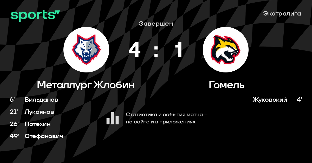 В прошедшем матче в рамках турнира Экстралига состоялась встреча команд Металлург Жлобин - Гомель в городе Жлобин (Беларусь) на стадионе Ледовый дворец Металлург (вместимость - 2018)