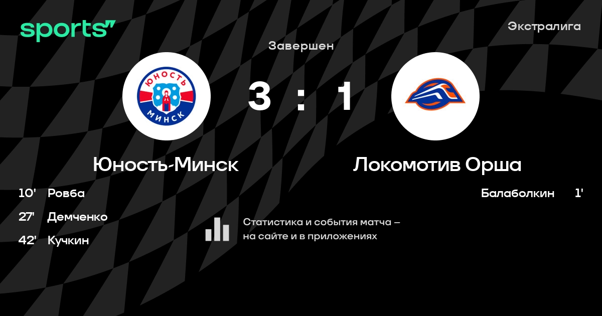 В прошедшем матче в рамках турнира Экстралига состоялась встреча команд Юность-Минск - Локомотив Орша в городе Минск (Беларусь) на стадионе Чижовка-Арена (вместимость - 9487)