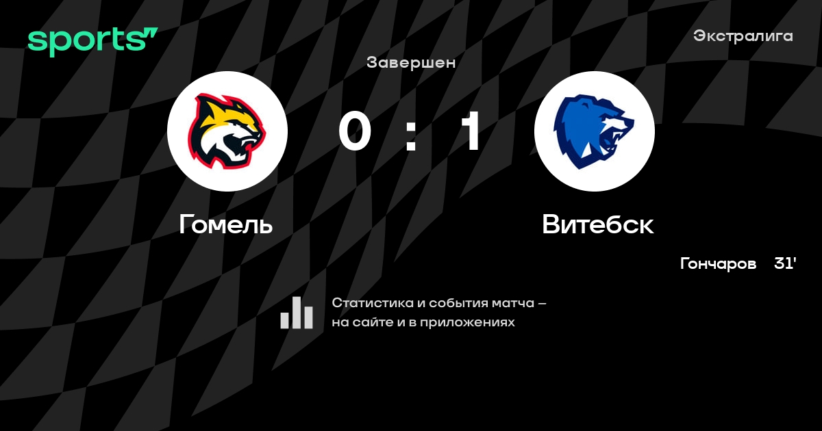 В прошедшем матче в рамках турнира Экстралига состоялась встреча команд Гомель - Витебск в городе Гомель (Беларусь) на стадионе Ледовый дворец Гомель (вместимость - 2700)