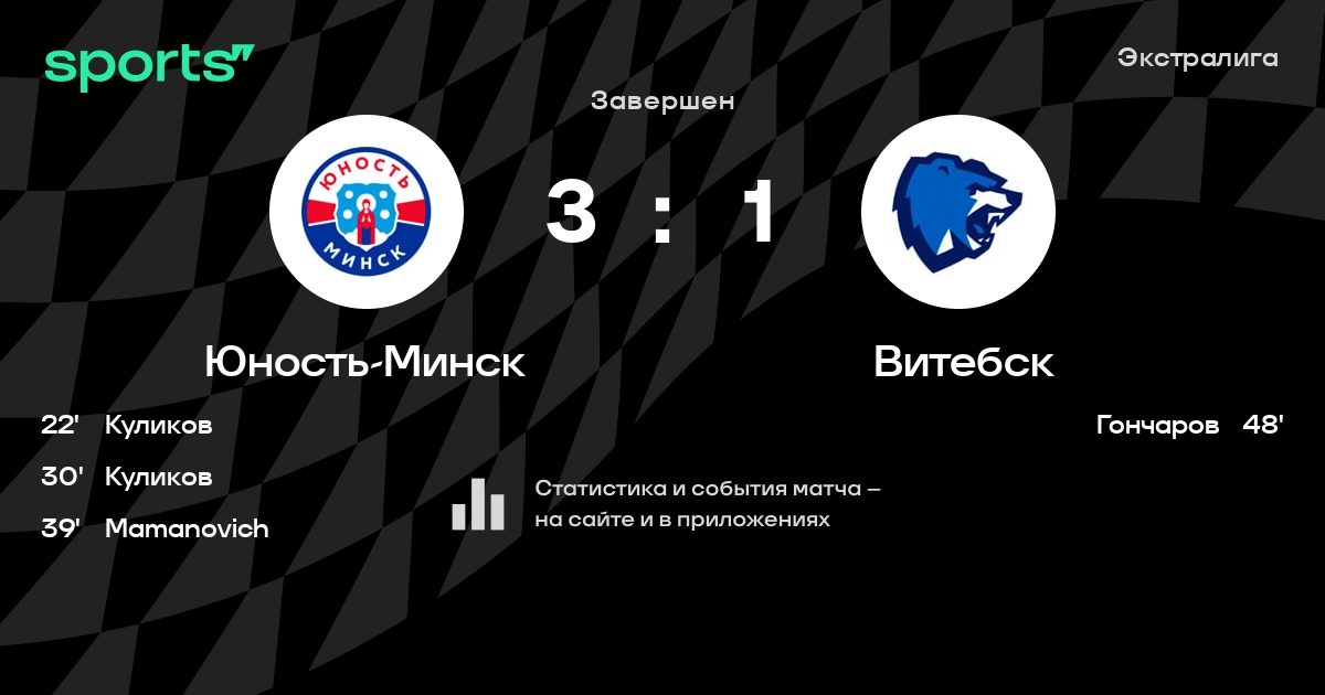 В прошедшем матче в рамках турнира Экстралига состоялась встреча команд Юность-Минск - Витебск в городе Минск (Беларусь) на стадионе Чижовка-Арена (вместимость - 9487)