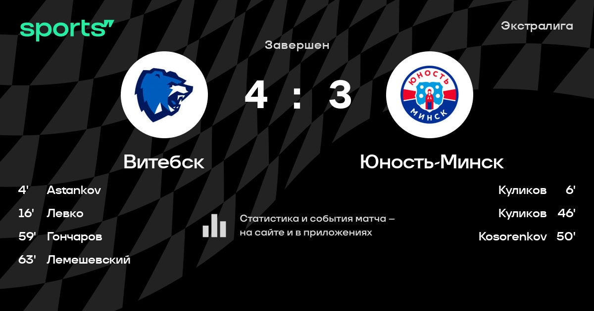 В прошедшем матче в рамках турнира Экстралига состоялась встреча команд Витебск - Юность-Минск в городе Витебск (Беларусь) на стадионе Витебский дворец спорта (вместимость - 2000)