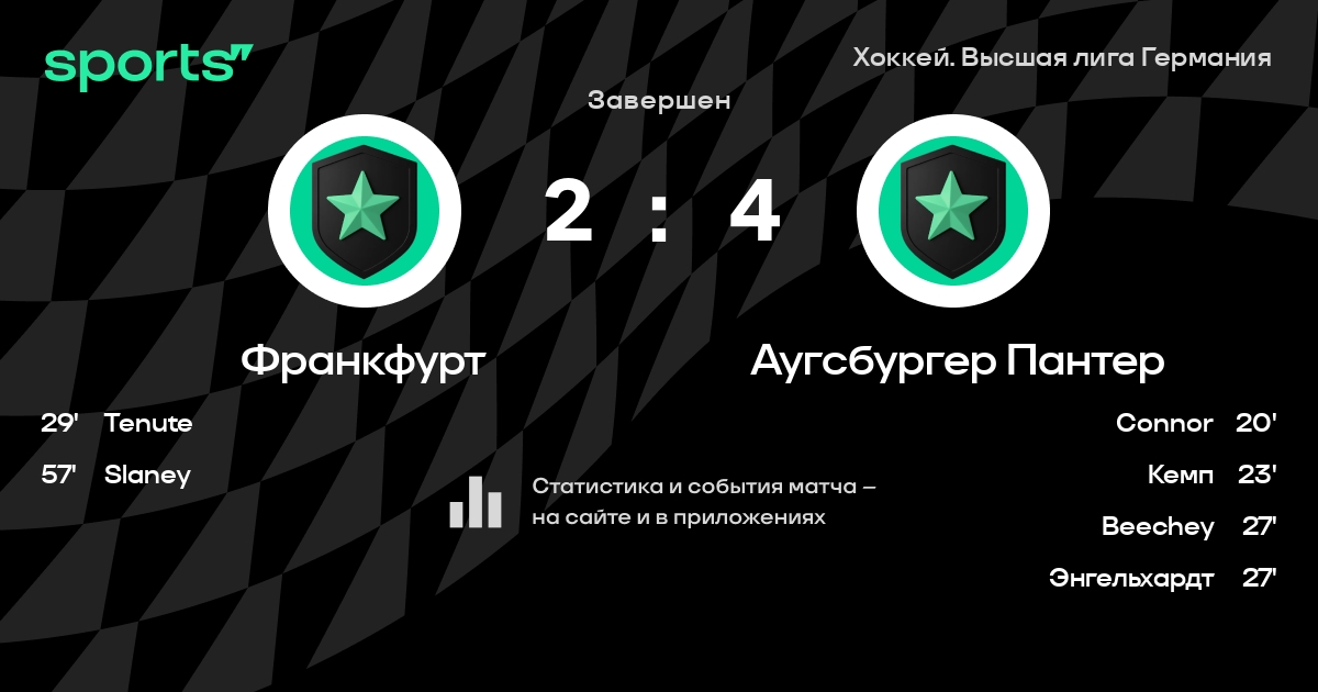 В прошедшем матче в рамках турнира Хоккей. Высшая лига Германия состоялась встреча команд Франкфурт - Аугсбургер Пантер