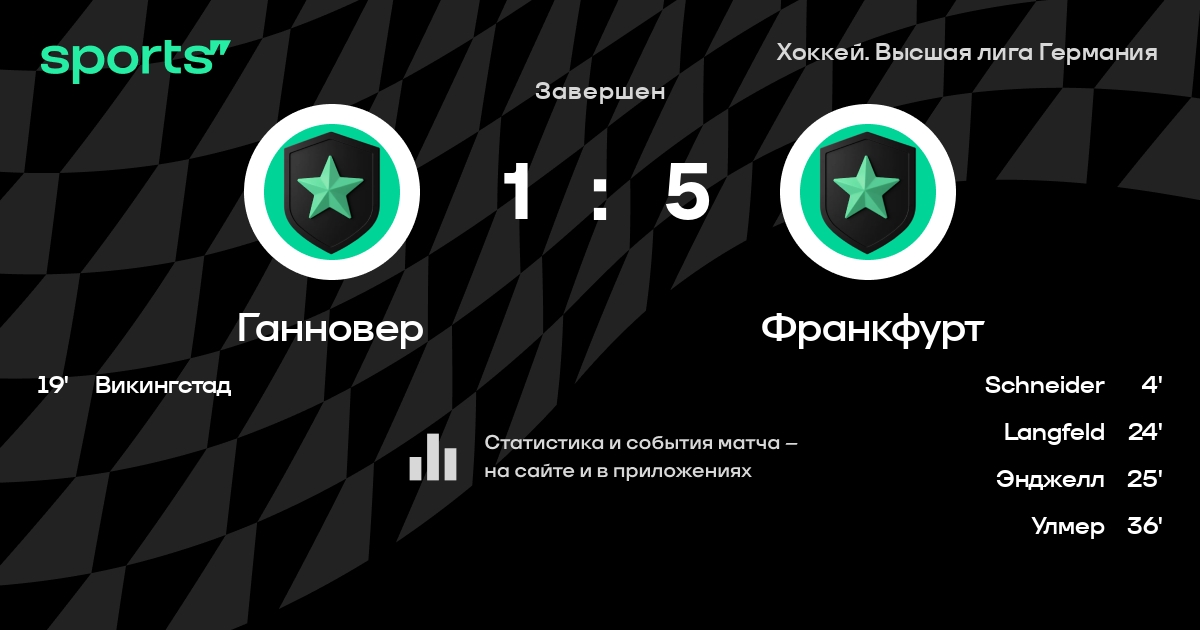 В прошедшем матче в рамках турнира Хоккей. Высшая лига Германия состоялась встреча команд Ганновер - Франкфурт