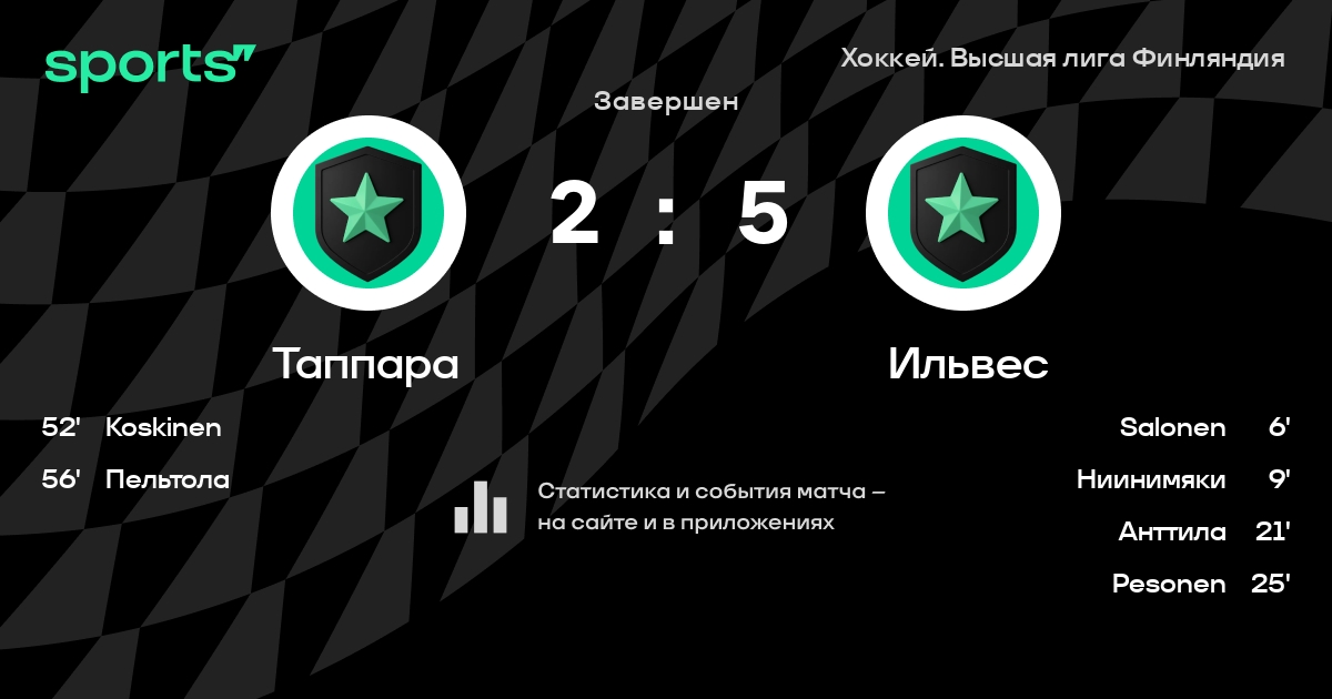В прошедшем матче в рамках турнира Хоккей. Высшая лига Финляндия состоялась встреча команд Таппара - Ильвес