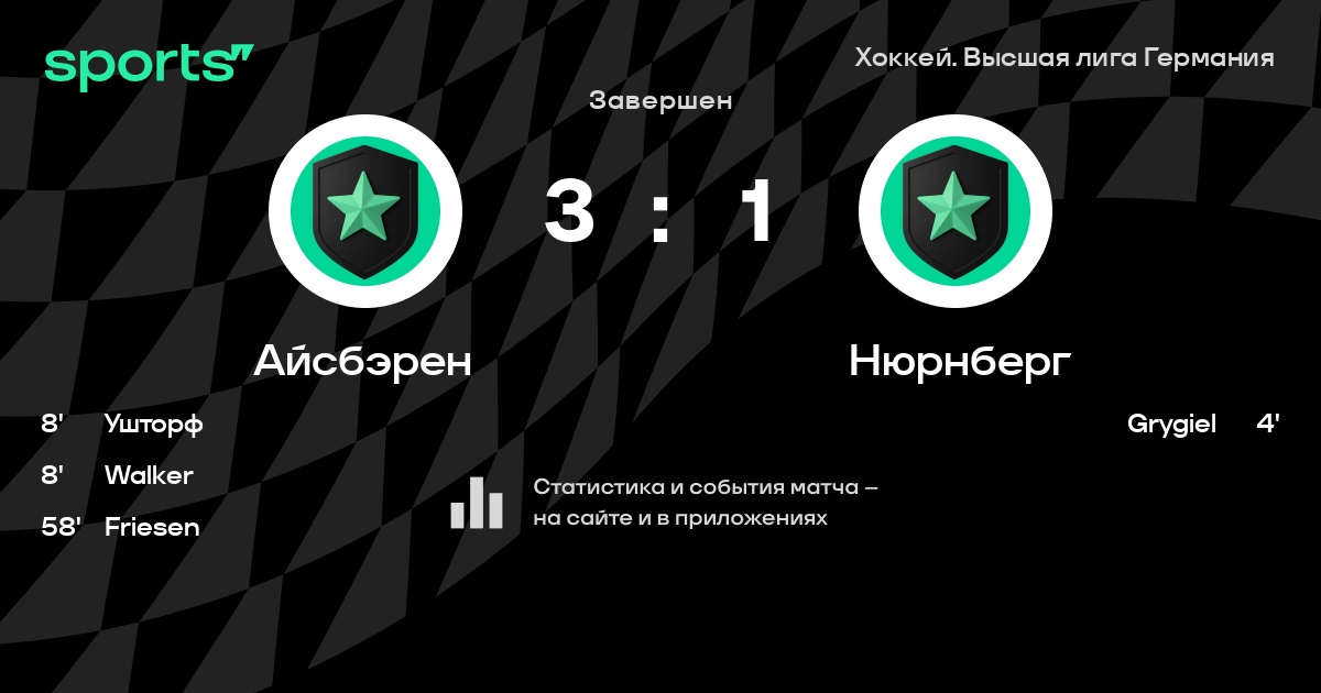 В прошедшем матче в рамках турнира Хоккей. Высшая лига Германия состоялась встреча команд Айсбэрен - Нюрнберг