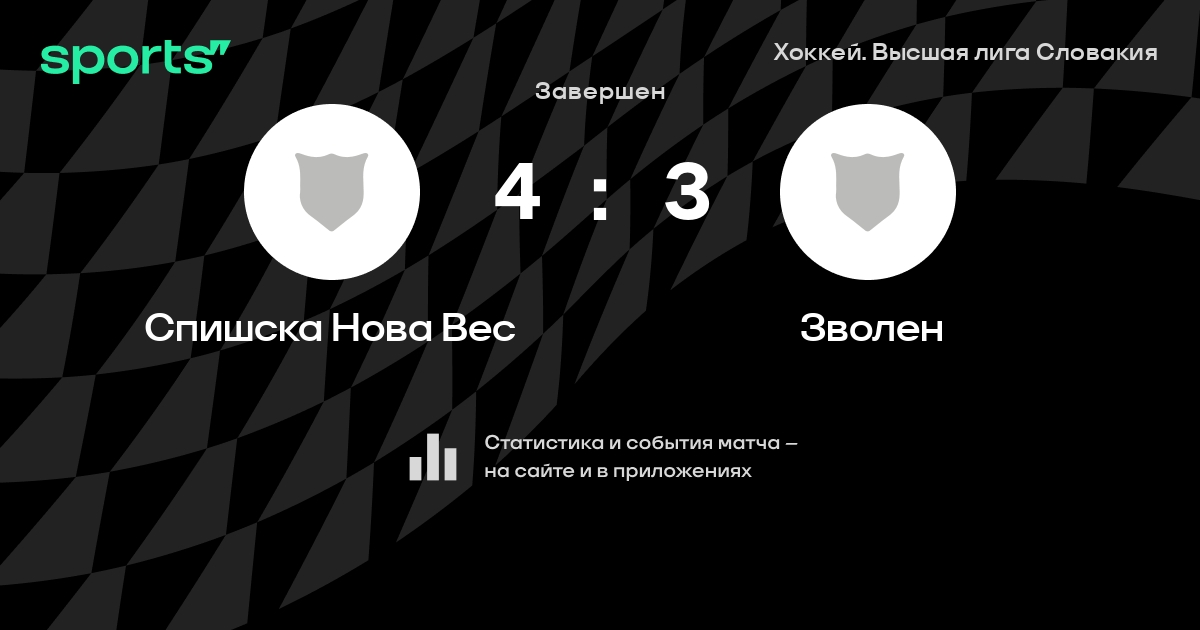 В прошедшем матче в рамках турнира Хоккей. Высшая лига Словакия состоялась встреча команд Спишска Нова Вес - Зволен