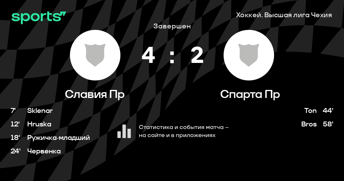 В прошедшем матче в рамках турнира Хоккей. Высшая лига Чехия состоялась встреча команд Славия Пр - Спарта Пр
