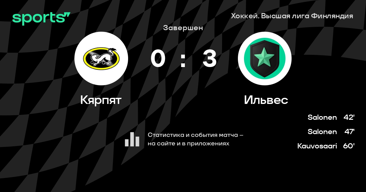 В прошедшем матче в рамках турнира Хоккей. Высшая лига Финляндия состоялась встреча команд Кярпят - Ильвес