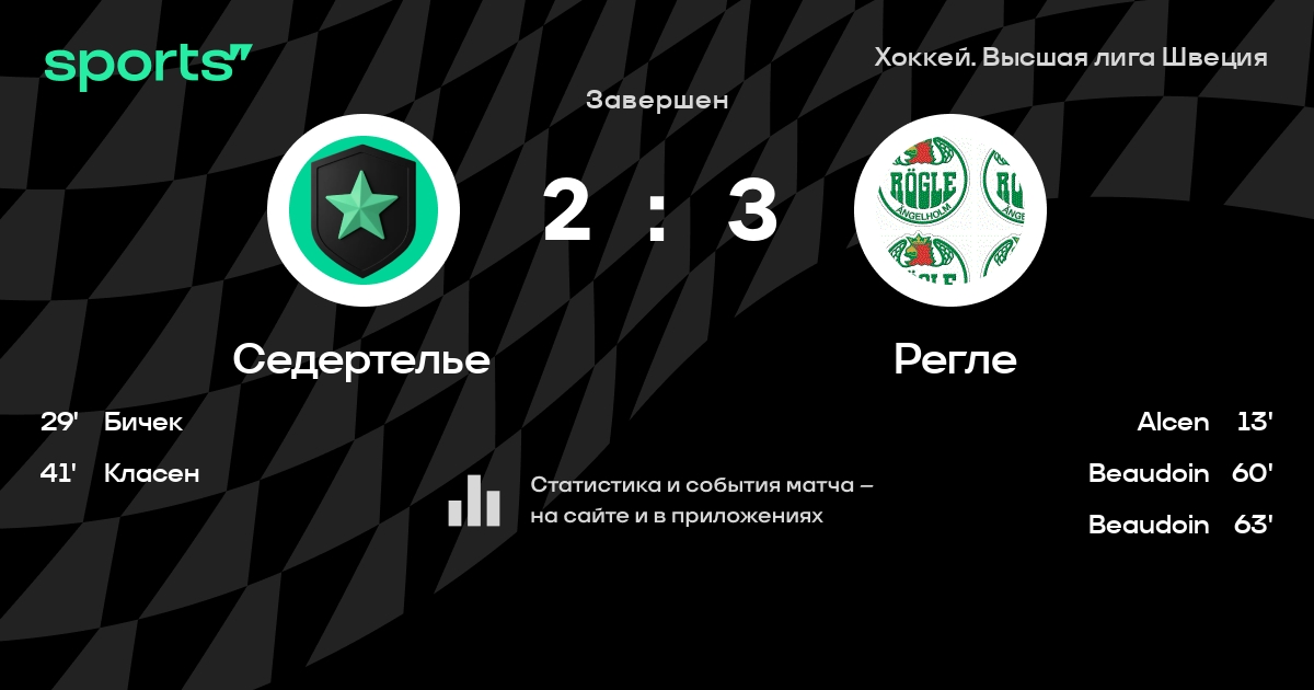 В прошедшем матче в рамках турнира Хоккей. Высшая лига Швеция состоялась встреча команд Седертелье - Регле