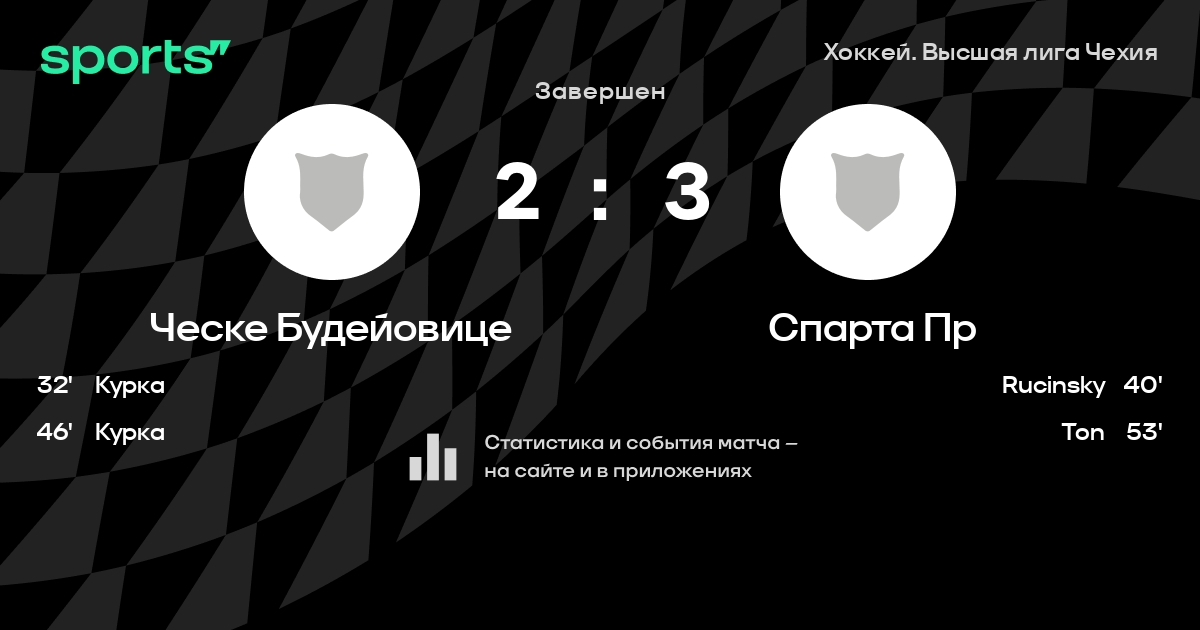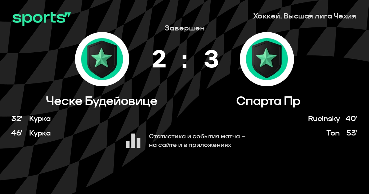 В прошедшем матче в рамках турнира Хоккей. Высшая лига Чехия состоялась встреча команд Ческе Будейовице - Спарта Пр