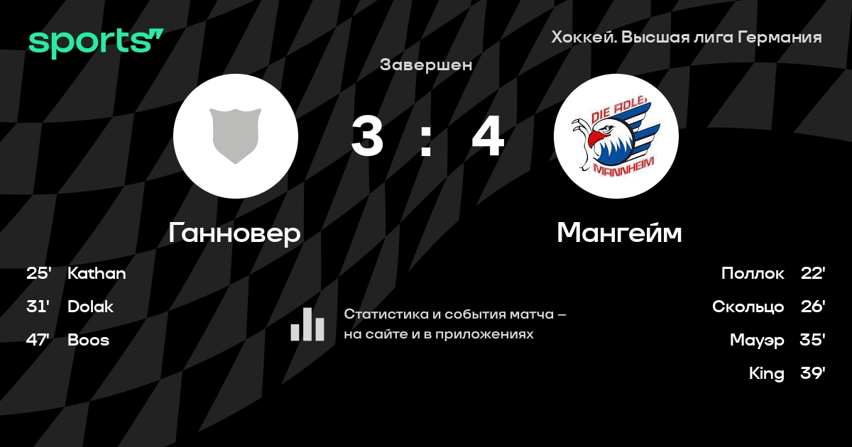 В прошедшем матче в рамках турнира Хоккей. Высшая лига Германия состоялась встреча команд Ганновер - Мангейм
