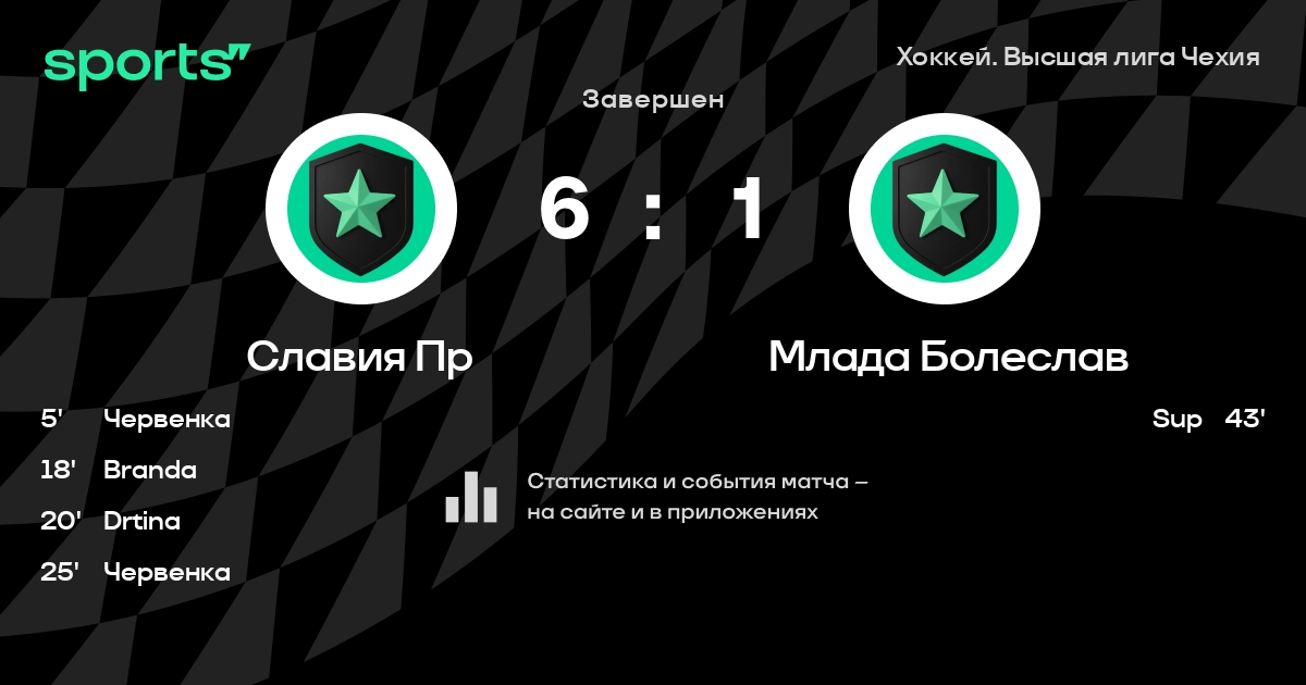 В прошедшем матче в рамках турнира Хоккей. Высшая лига Чехия состоялась встреча команд Славия Пр - Млада Болеслав