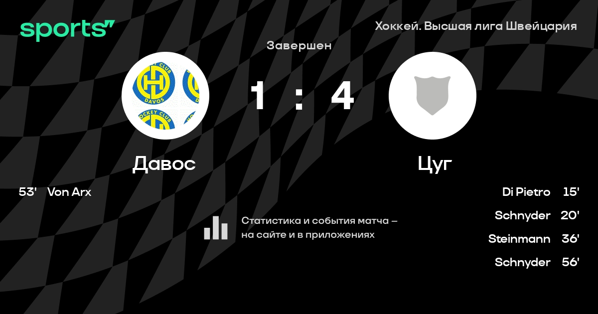 В прошедшем матче в рамках турнира Хоккей. Высшая лига Швейцария состоялась встреча команд Давос - Цуг