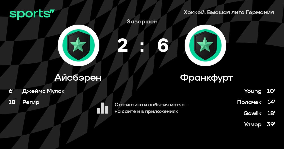В прошедшем матче в рамках турнира Хоккей. Высшая лига Германия состоялась встреча команд Айсбэрен - Франкфурт