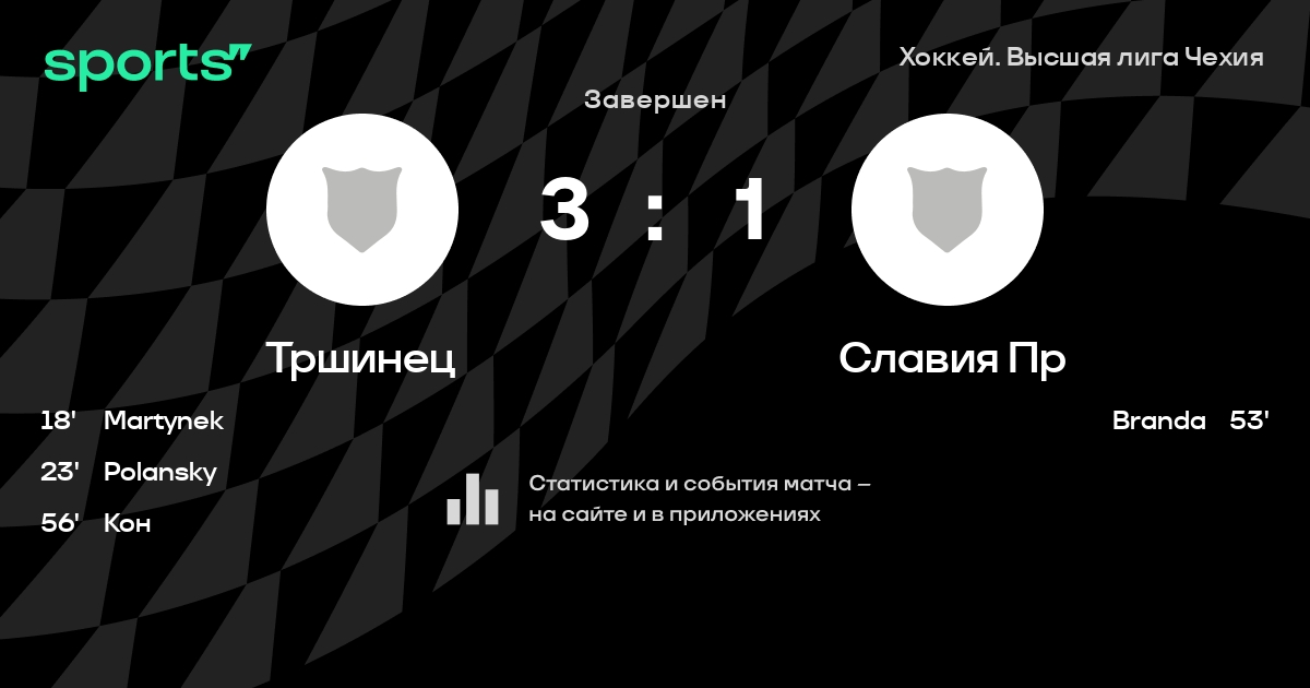 В прошедшем матче в рамках турнира Хоккей. Высшая лига Чехия состоялась встреча команд Тршинец - Славия Пр