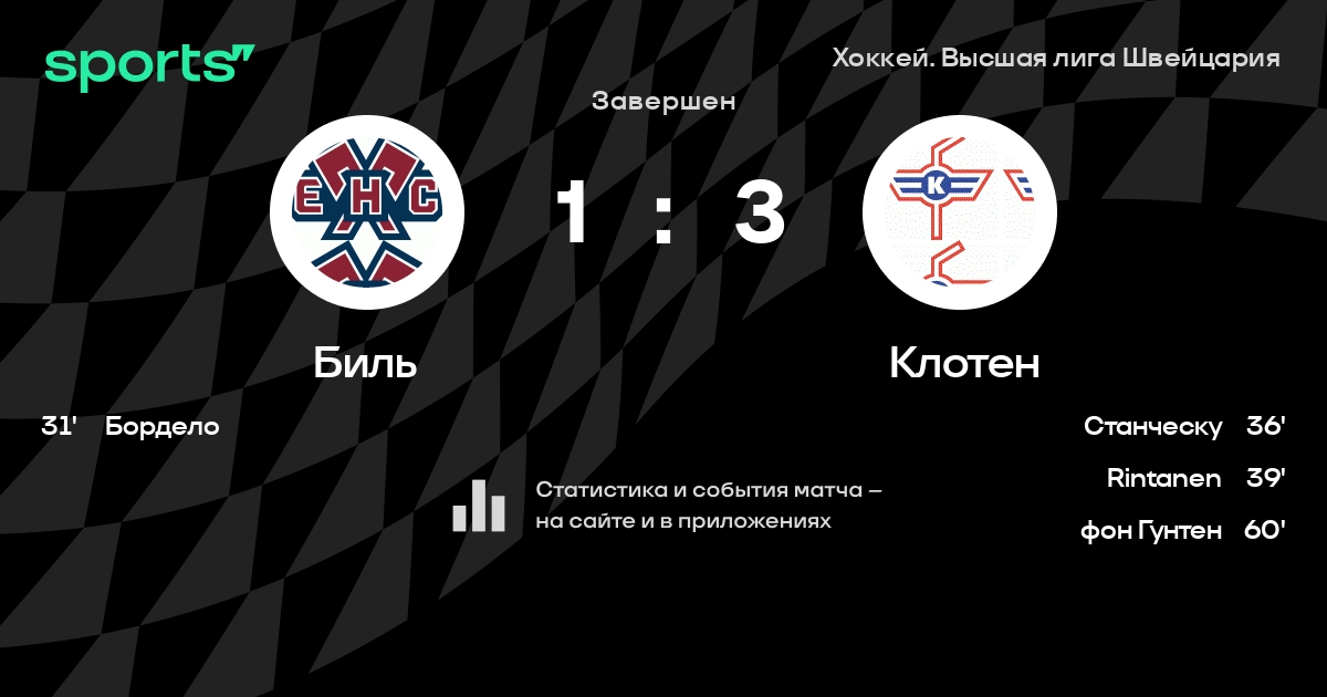 В прошедшем матче в рамках турнира Хоккей. Высшая лига Швейцария состоялась встреча команд Биль - Клотен