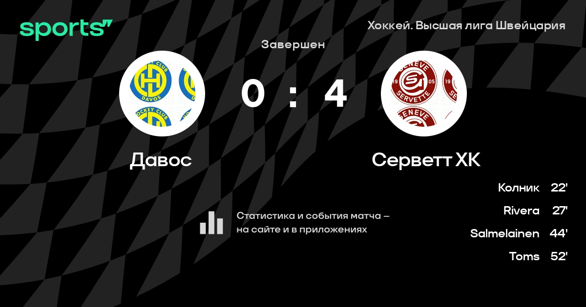 Как прошел матч, смотрите в текстовой трансляции Давос - Серветт ХК на Sports.ru