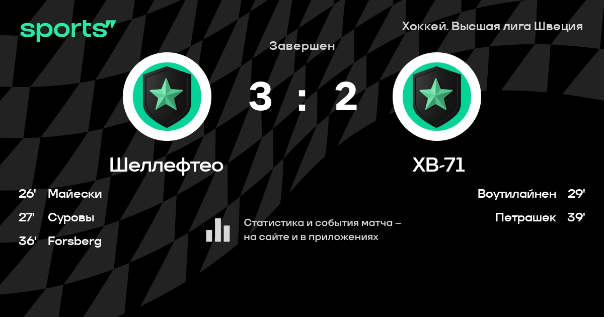 В прошедшем матче в рамках турнира Хоккей. Высшая лига Швеция состоялась встреча команд Шеллефтео - ХВ-71