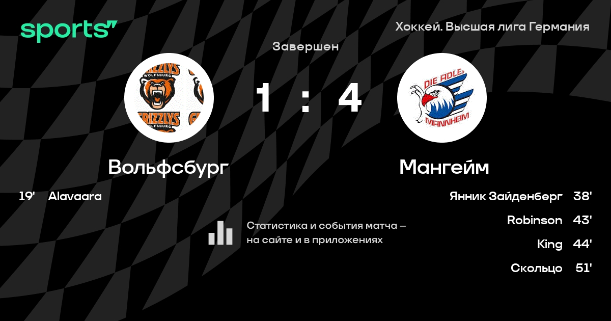 В прошедшем матче в рамках турнира Хоккей. Высшая лига Германия состоялась встреча команд Вольфсбург - Мангейм