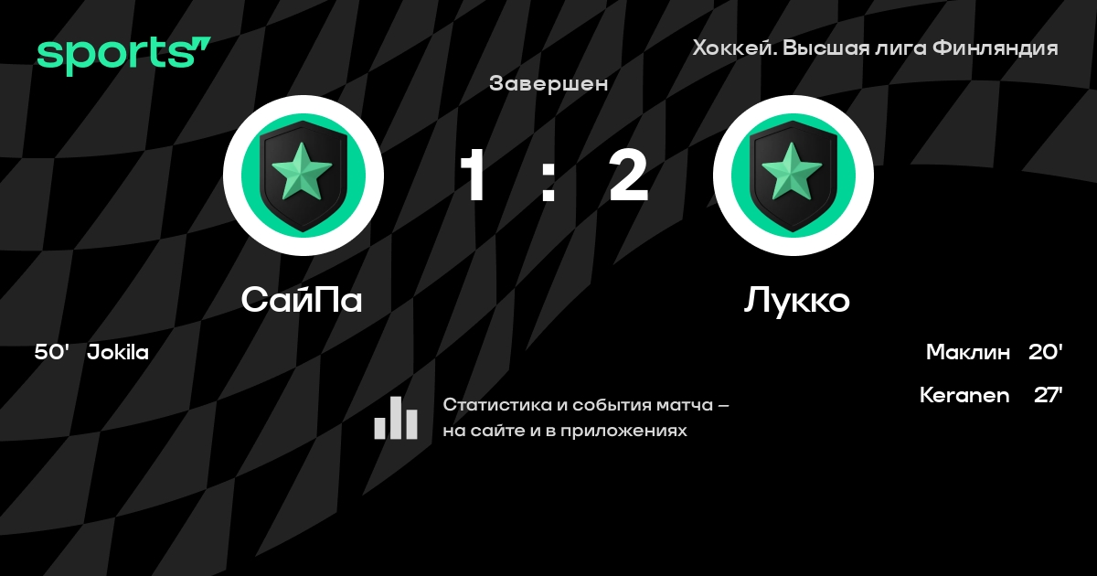 В прошедшем матче в рамках турнира Хоккей. Высшая лига Финляндия состоялась встреча команд СайПа - Лукко