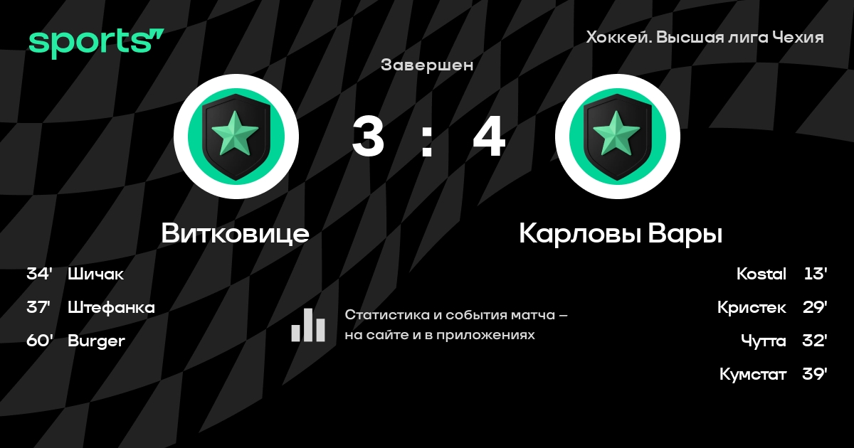 В прошедшем матче в рамках турнира Хоккей. Высшая лига Чехия состоялась встреча команд Витковице - Карловы Вары