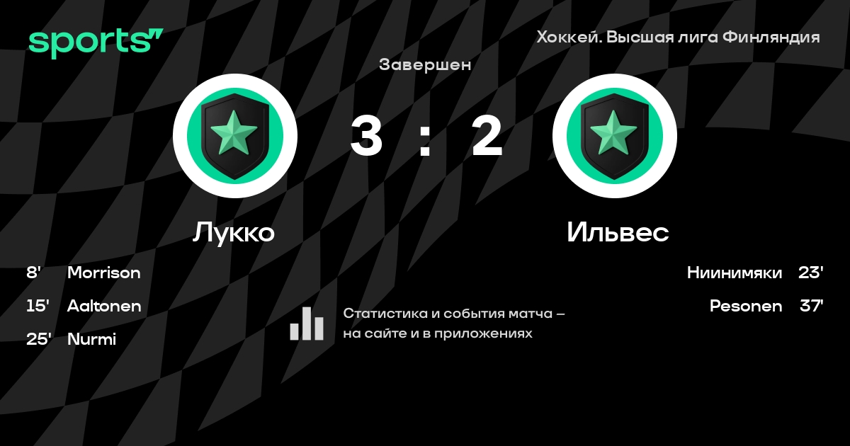 В прошедшем матче в рамках турнира Хоккей. Высшая лига Финляндия состоялась встреча команд Лукко - Ильвес