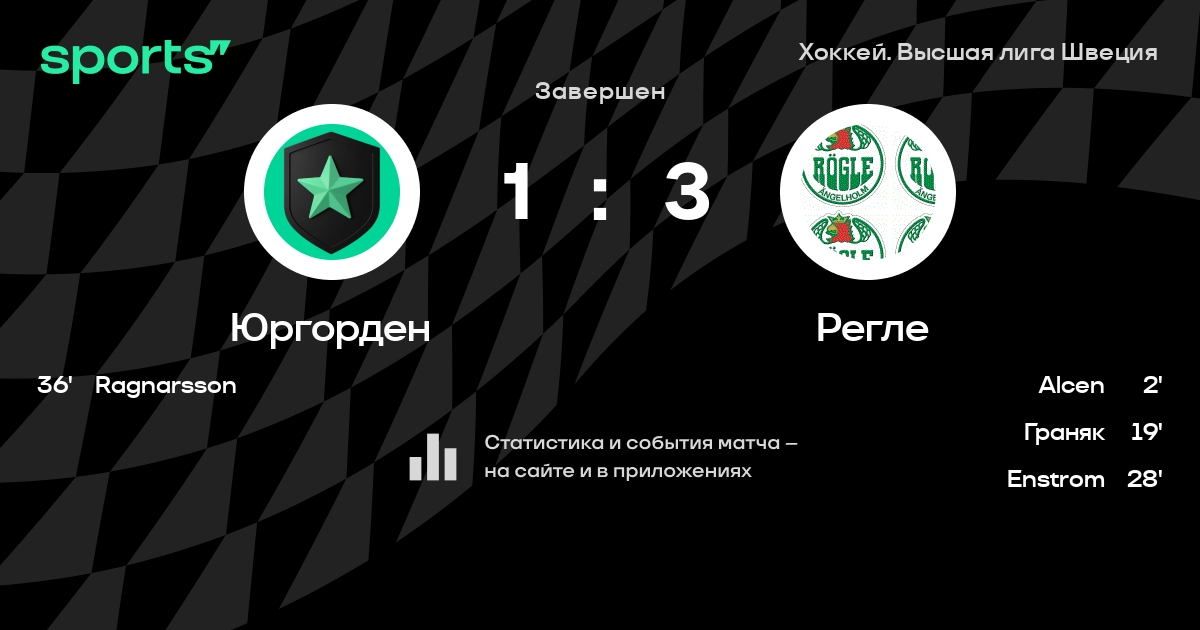 В прошедшем матче в рамках турнира Хоккей. Высшая лига Швеция состоялась встреча команд Юргорден - Регле