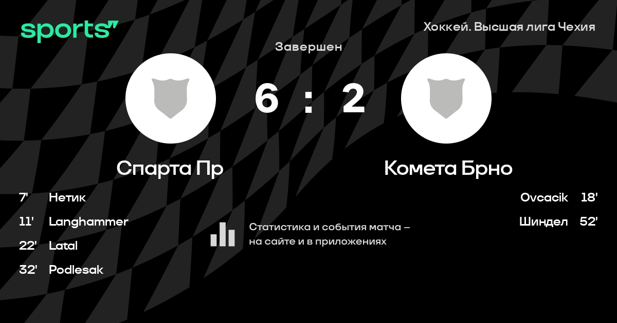 В прошедшем матче в рамках турнира Хоккей. Высшая лига Чехия состоялась встреча команд Спарта Пр - Комета Брно