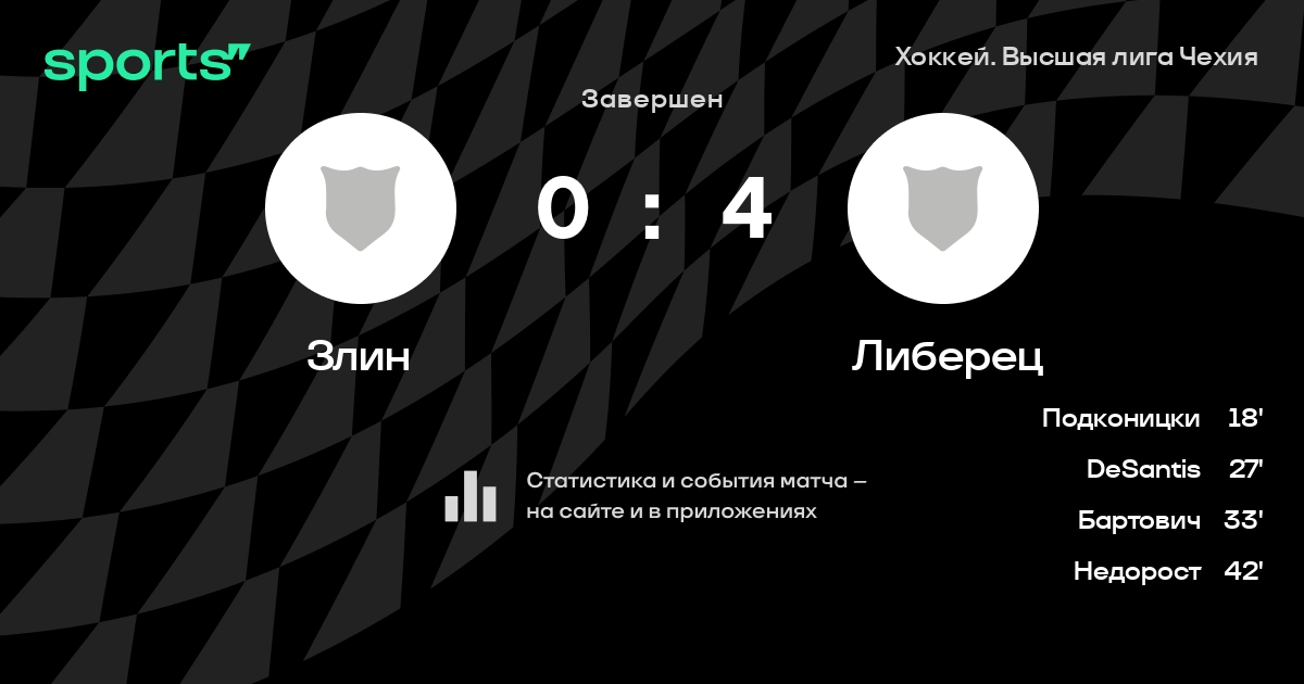 В прошедшем матче в рамках турнира Хоккей. Высшая лига Чехия состоялась встреча команд Злин - Либерец