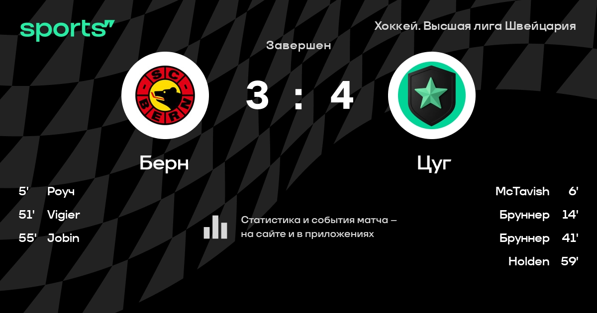 В прошедшем матче в рамках турнира Хоккей. Высшая лига Швейцария состоялась встреча команд Берн - Цуг