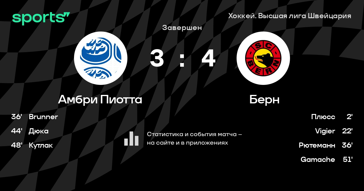 В прошедшем матче в рамках турнира Хоккей. Высшая лига Швейцария состоялась встреча команд Амбри Пиотта - Берн