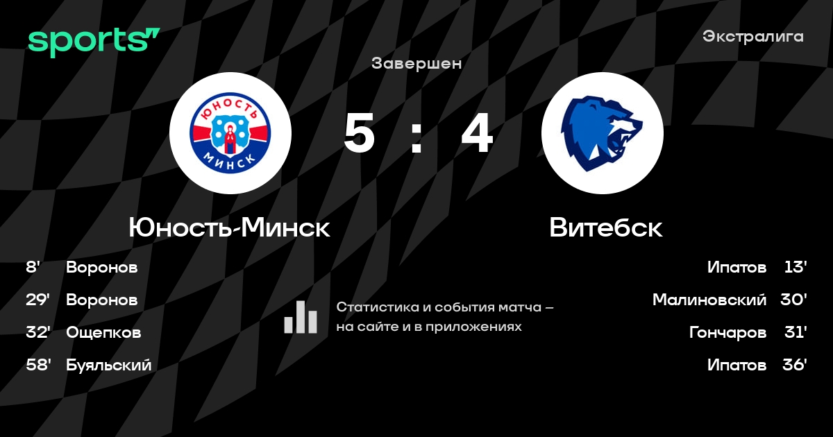 В прошедшем матче в рамках турнира Экстралига состоялась встреча команд Юность-Минск - Витебск в городе Минск (Беларусь) на стадионе Чижовка-Арена (вместимость - 9487)