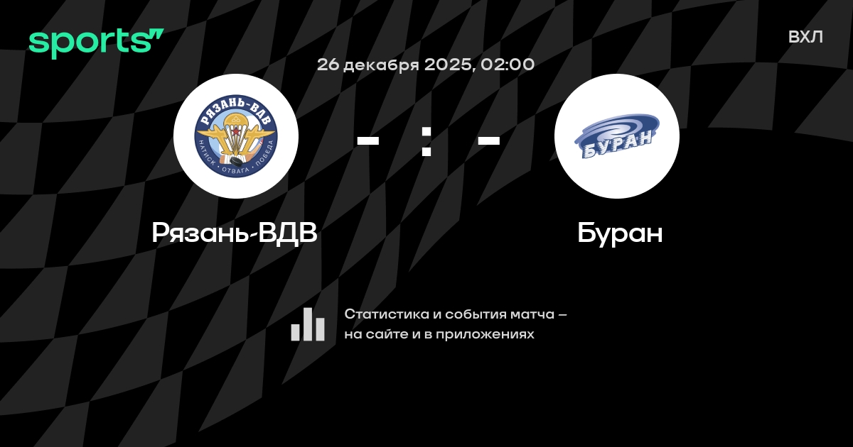 В предстоящем матче в рамках турнира ВХЛ пройдет встреча команд Рязань-ВДВ - Буран в городе на стадионе The Palace of sports Olimpiyskiy.